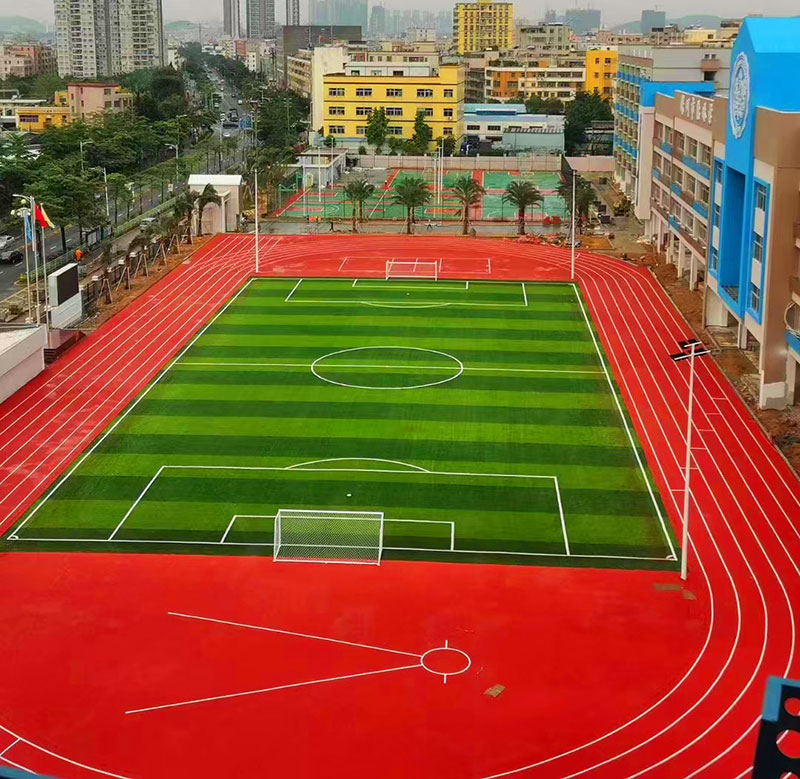 • 服务项目中小学及高中部的混合型跑道,人造草足球场,硅PU球场等